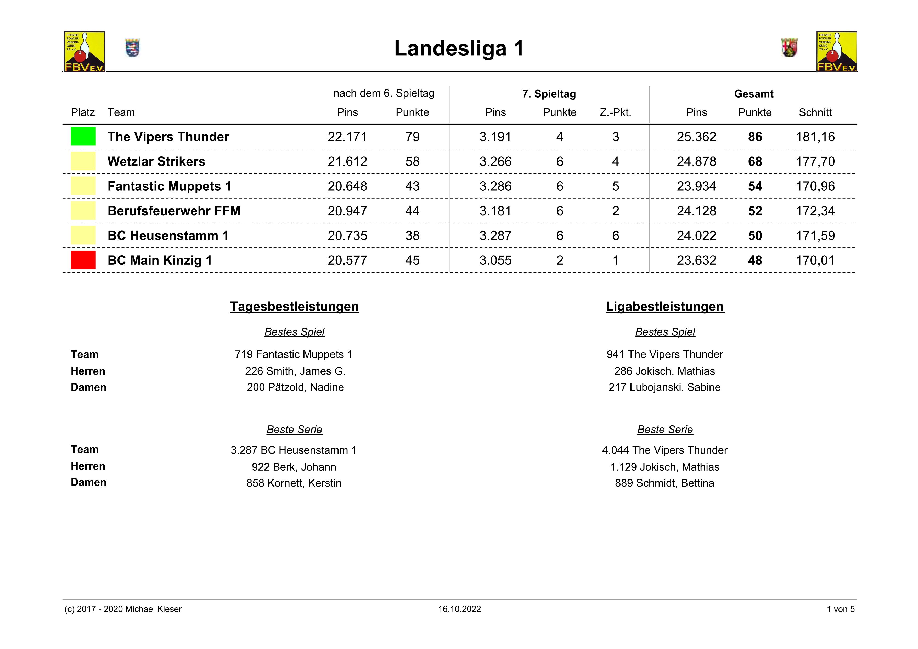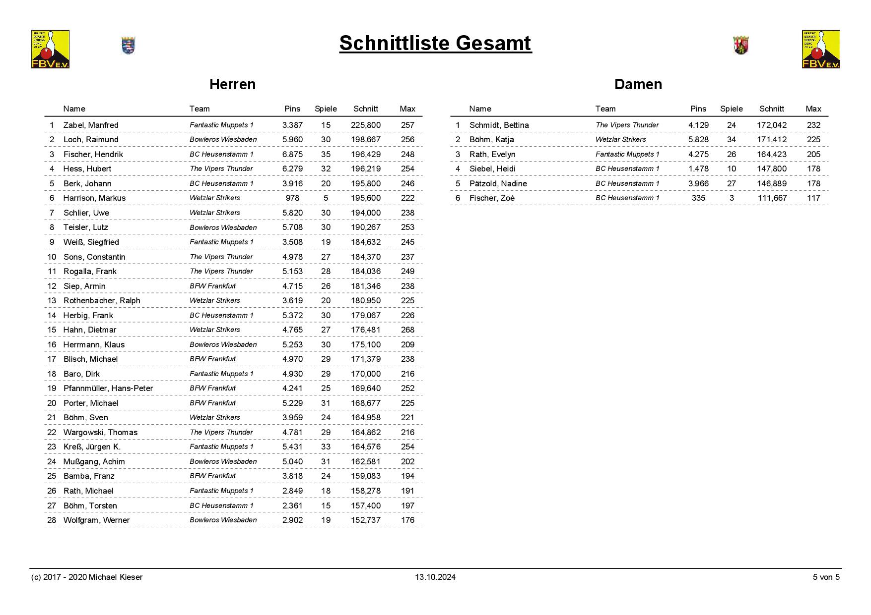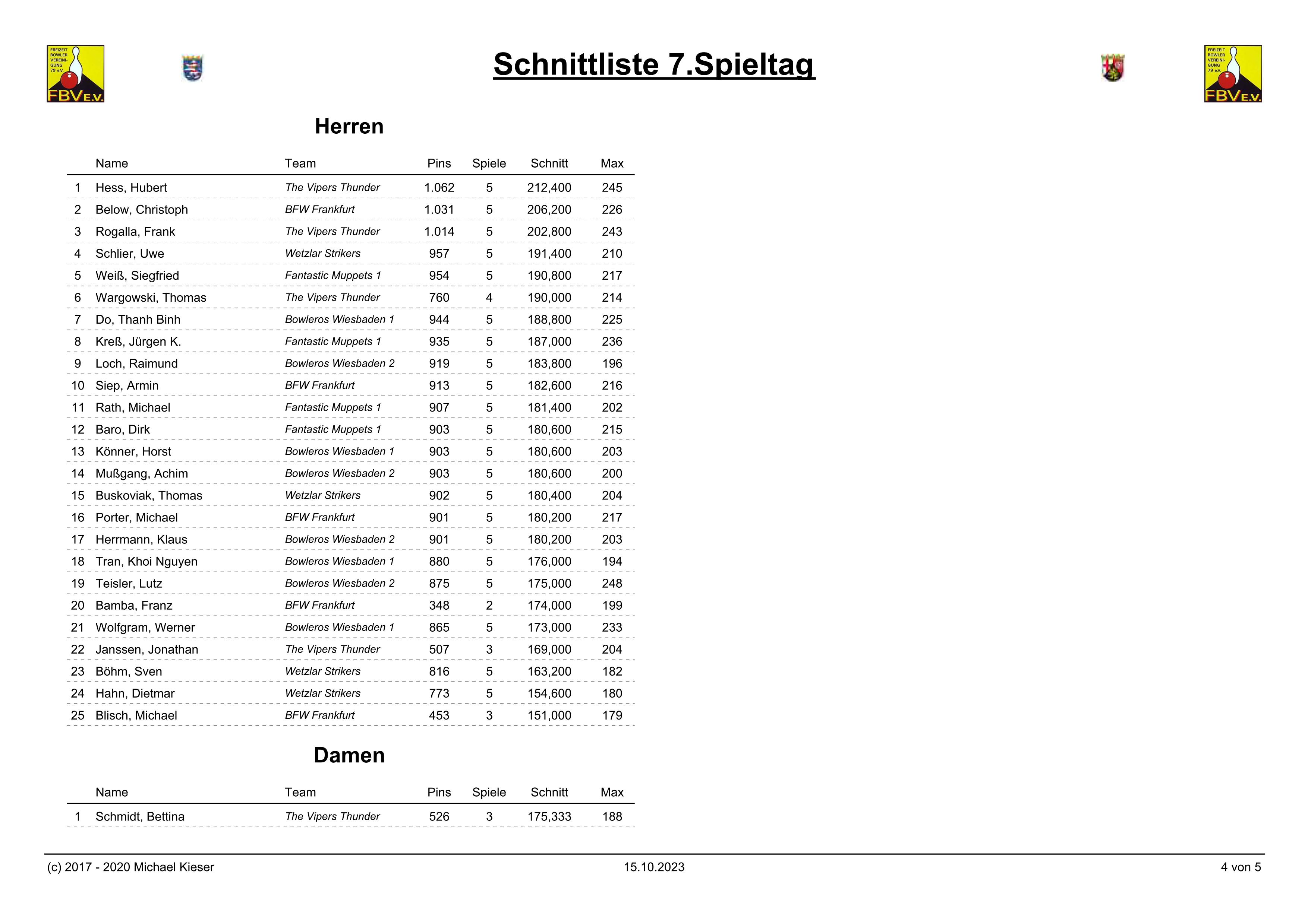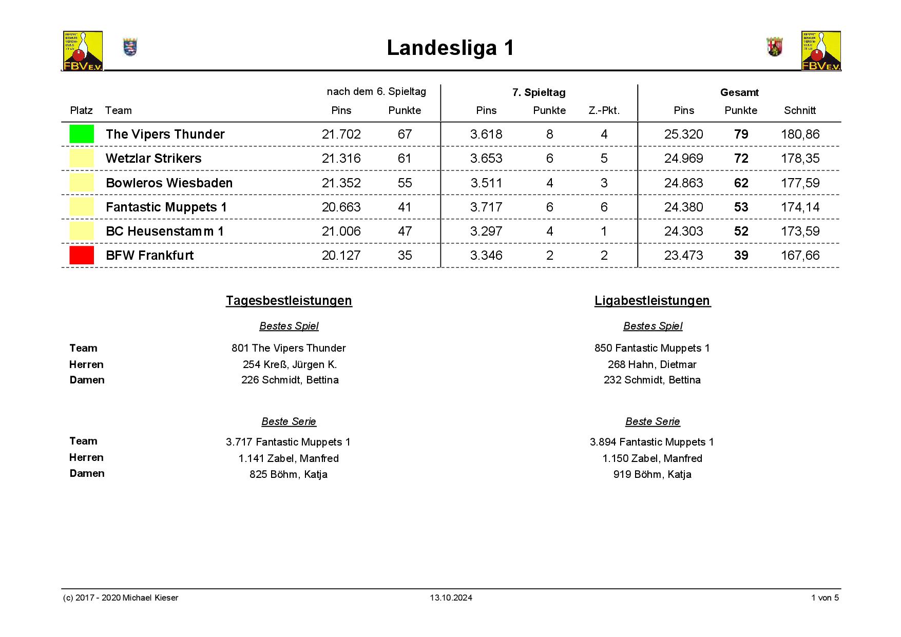 in Bowlingcenter Wetzlar Siebter Spieltag in der FBV Landesliga 1 12.Oktober 2024