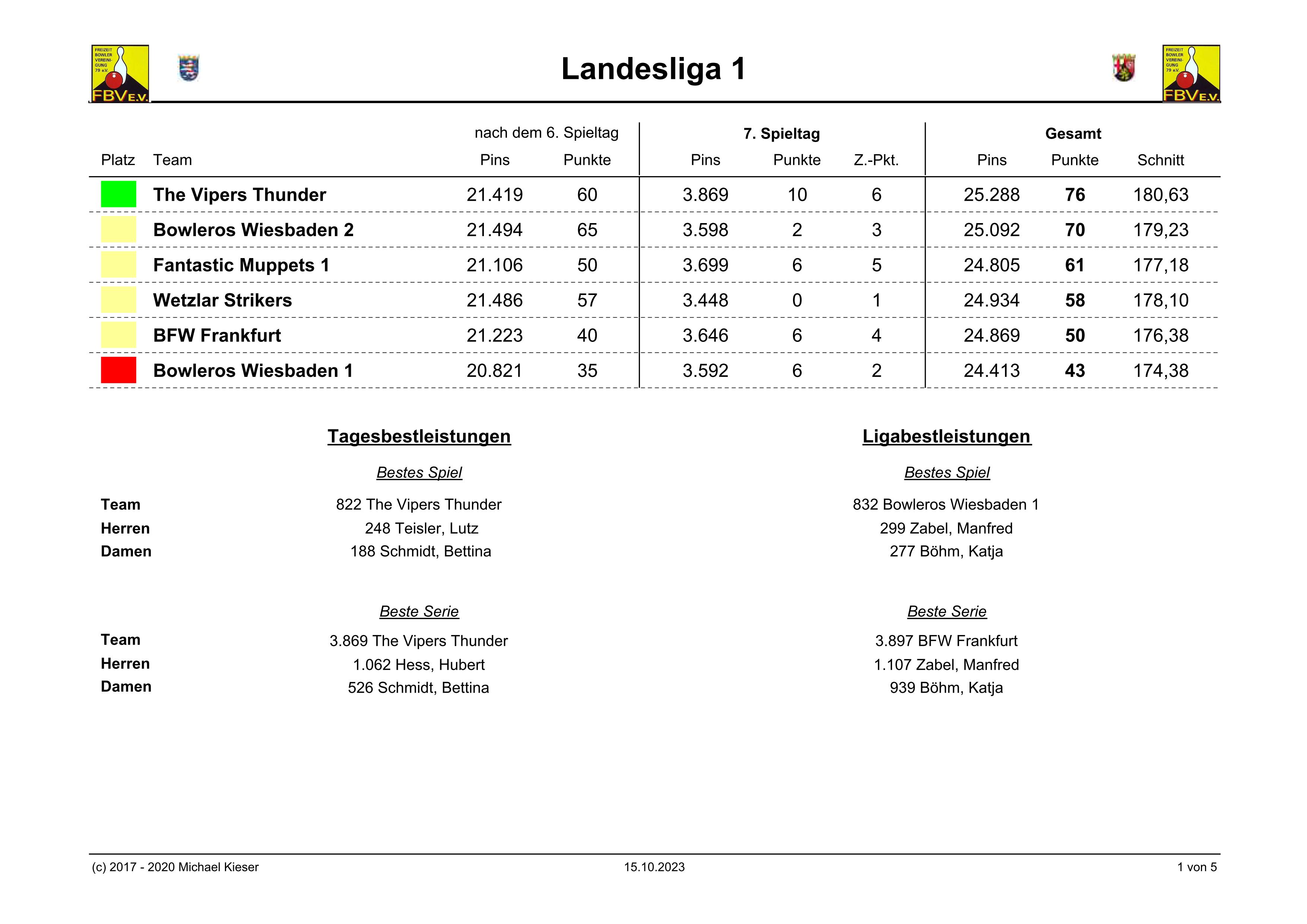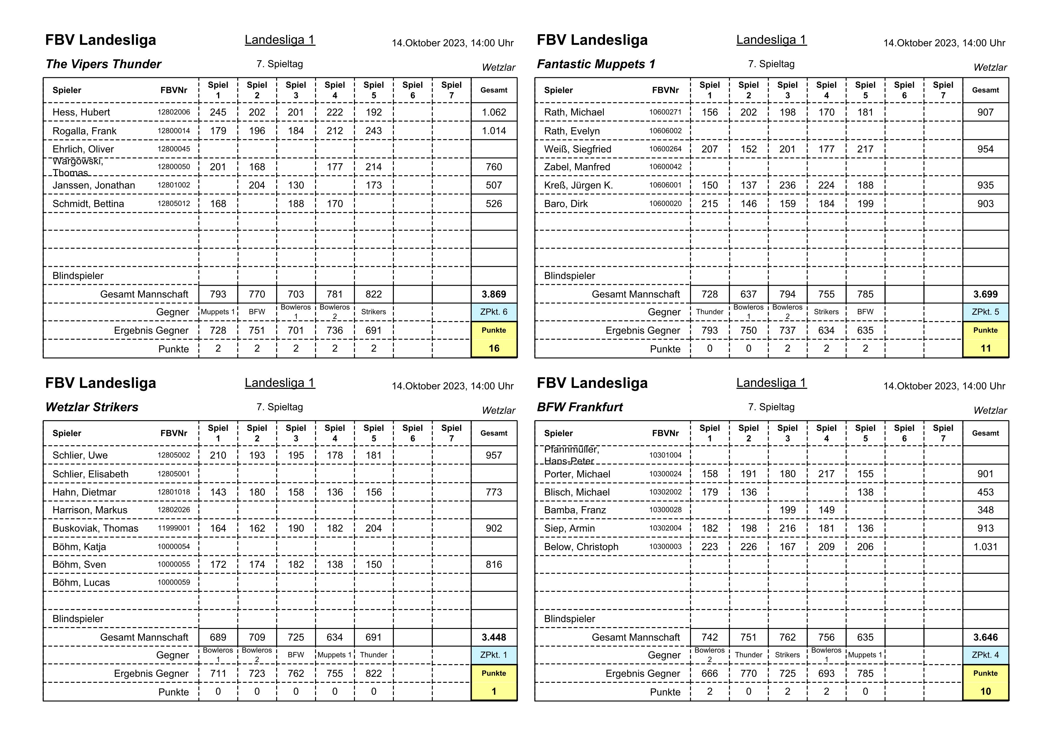 in Bowlingcenter Wetzlar Siebter Spieltag in der FBV Landesliga 1 14.Oktober 2023