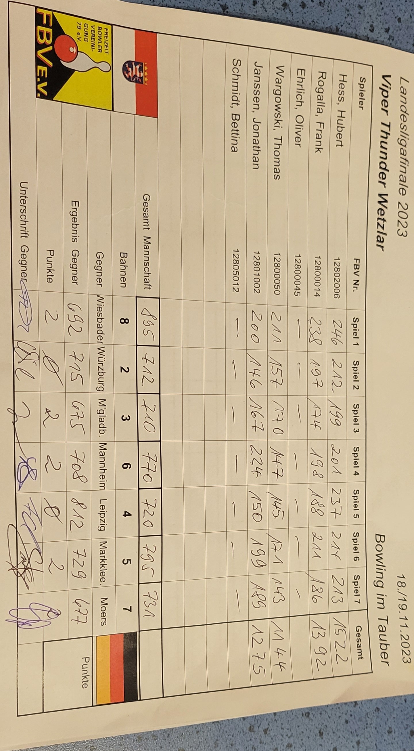 Bowling in Tauber FBV 79 Landesliga Finale 18 & 19.November 2023