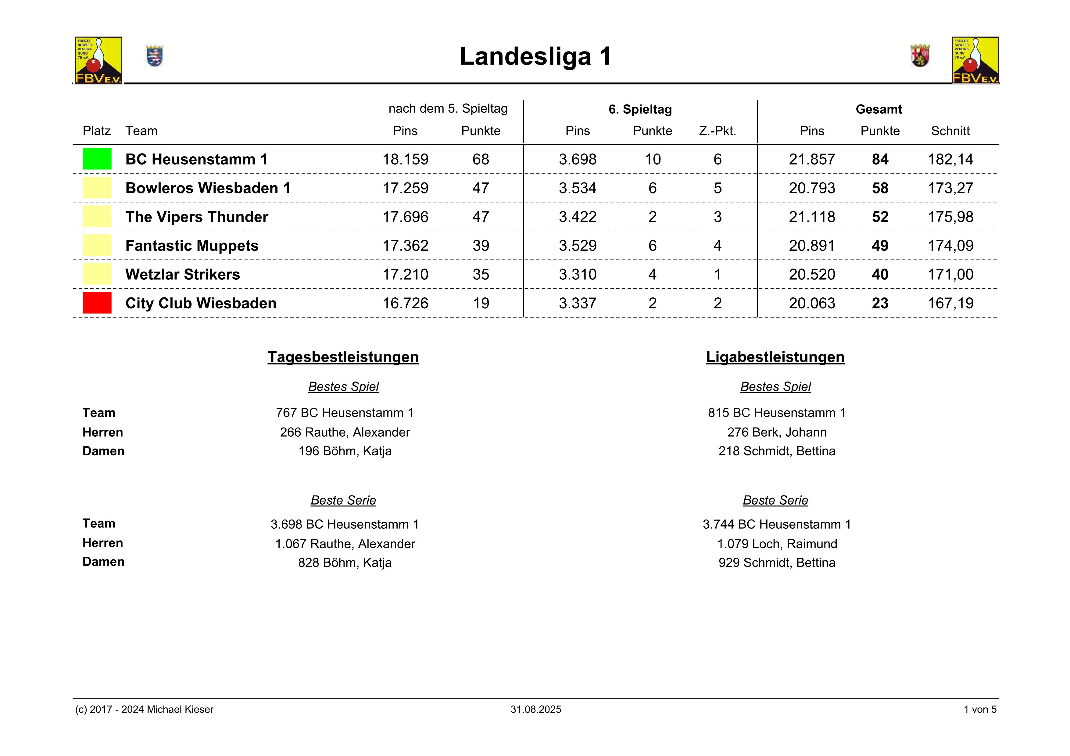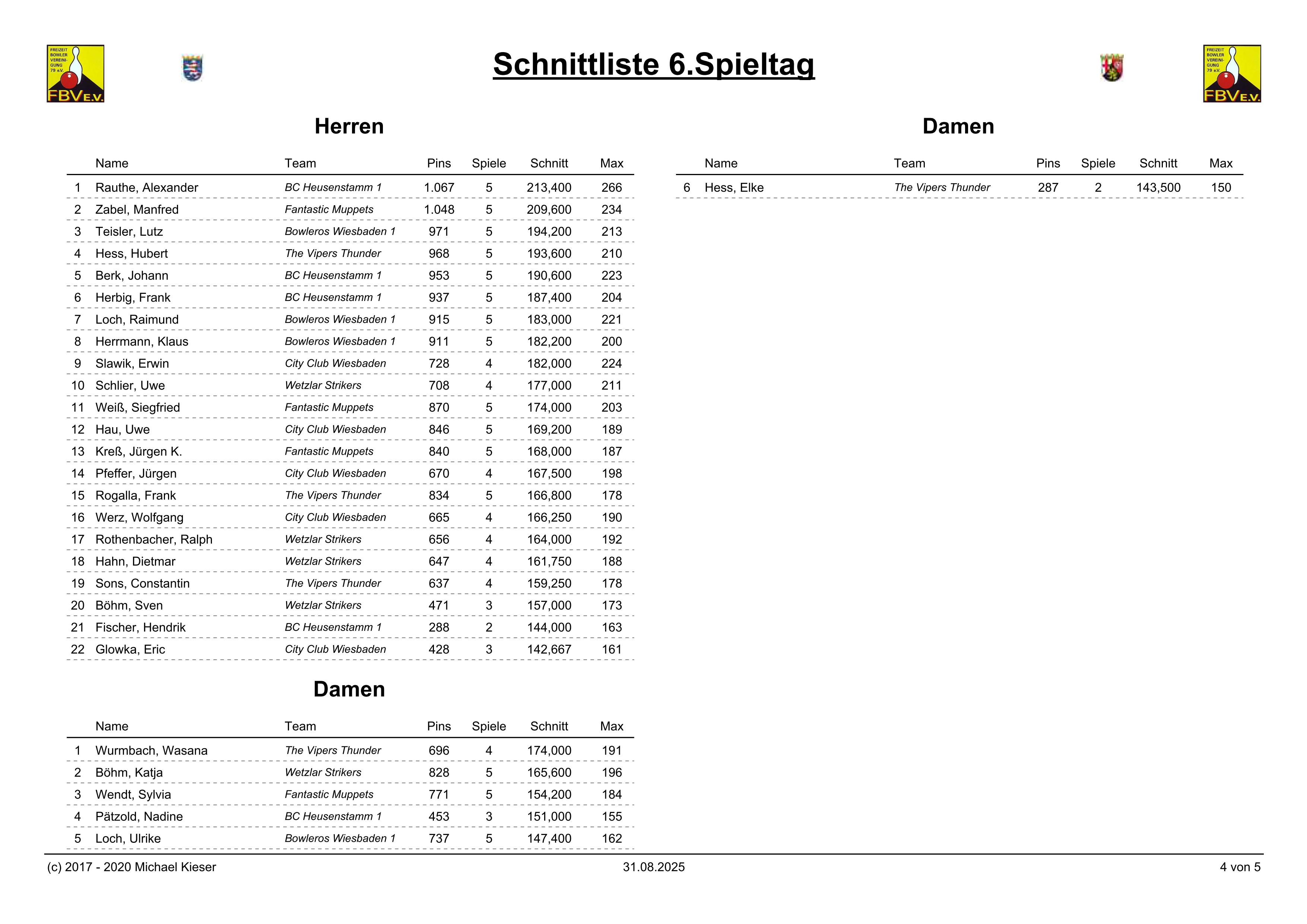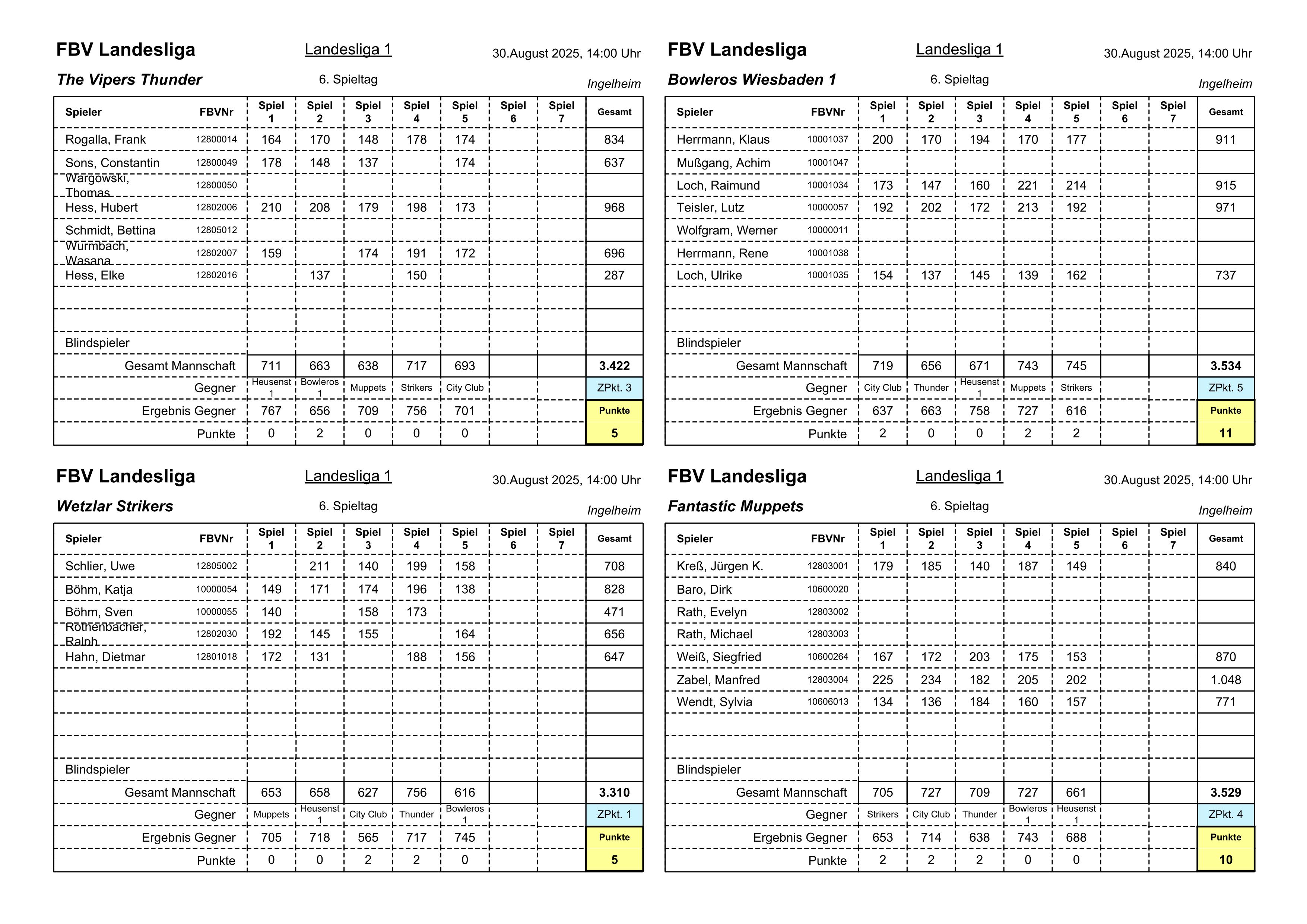 31.August 2024 6. Spieltag in Hansa-Bowling Hanau