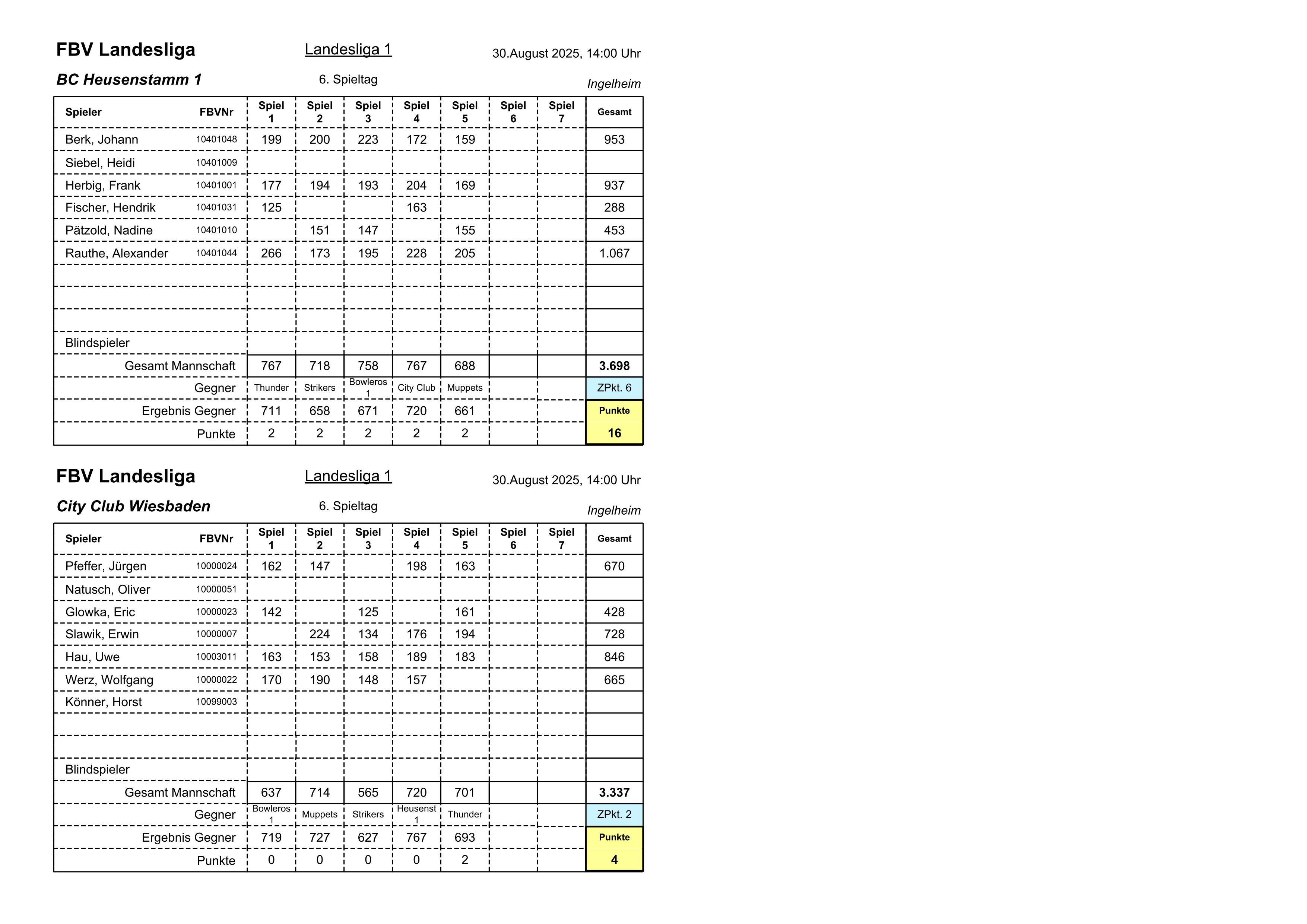 in Ingelheim 6 Spieltag in der FBV Landesliga 1 30.August 2025